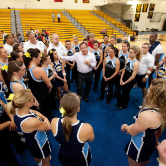 Jerry likes to personally open and close each camp by speaking to the teams. Much like all Varsity Spirit Camps, whether you’ve attended a UCA Pine Forest camp as a cheerleader or coach, you leave each year feeling inspired by your experience and look forward to carrying on the traditions. Every year, Jerry is motivated by the spirit that he gets to see in action every summer... The spirit that each cheerleader brings and the memories they take with when they leave.